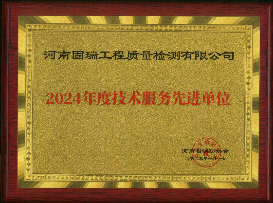 熱烈祝賀河南固瑞工程質(zhì)量檢測有限公司榮獲河南省消防協(xié)會2024年度技術(shù)服務(wù)先進單位?。。?